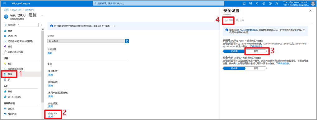 2 属性 > 安全设置 > 禁用软删除 > 保存