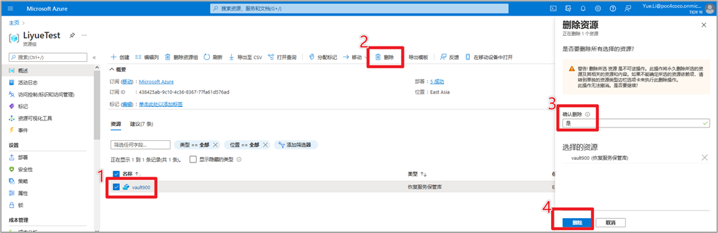 8 重新选择恢复服务保管库 > 删除