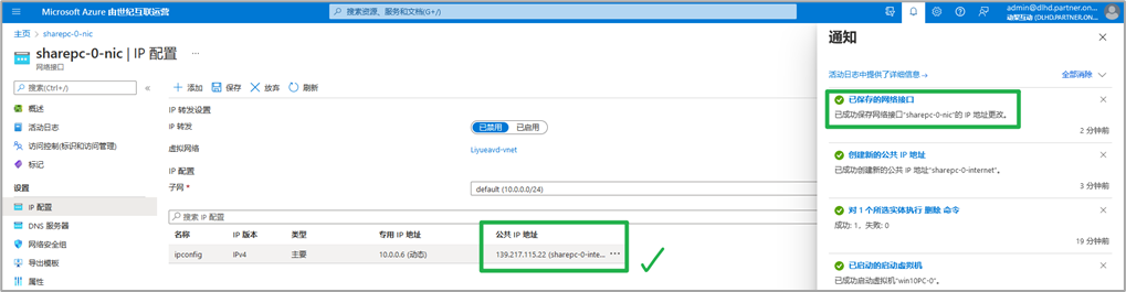 5 等待2分钟 > 进入IP配置 > 公共IP地址已经生成(固定IP)