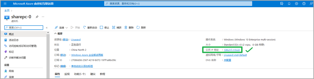 *注:Azure虚拟桌面会话主机默认无公共IP地址,如需添加也可以参考本文