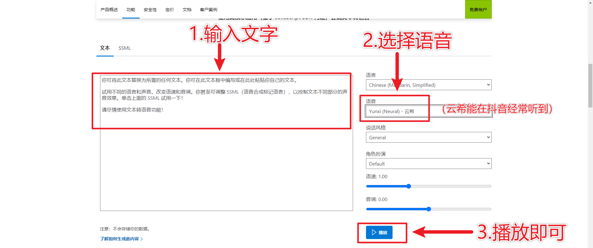 *注:微软Azure账号每月提供50万字符(25万汉字)免费转语音功能。