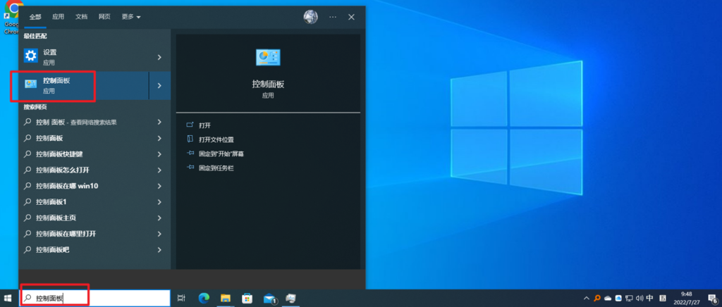 进入控制面板