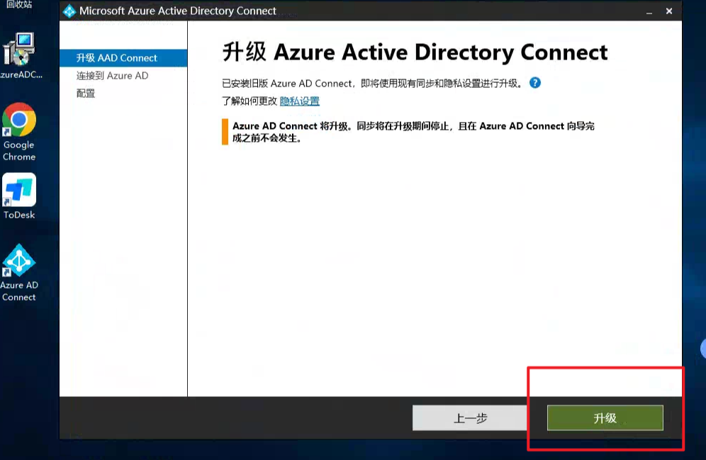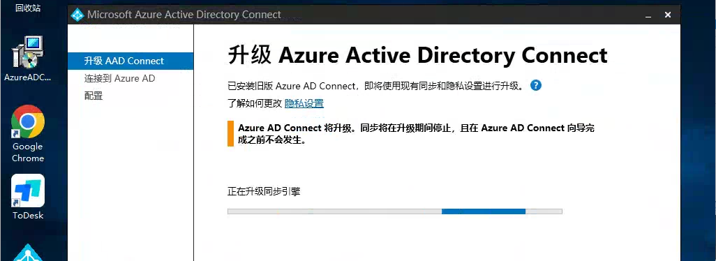 Azure AD Connect手动升级 注:Azure AD Connect安装采用“快速配置”,其它设置均为默认,可参考本文手动升级版本。 当前版本:1.6.4.0 下载最新版本:2.1.18 双击安装包 > 点“升级” 升级中 输入M365管理员账号密码 > 下一步 正在确认 点“升级” 更新中 升级完成 在AD中新建或修改用户,执行同步命令,检查同步是否正常 Start-ADSyncSyncCycle -PolicyType Initial Post Views: 2