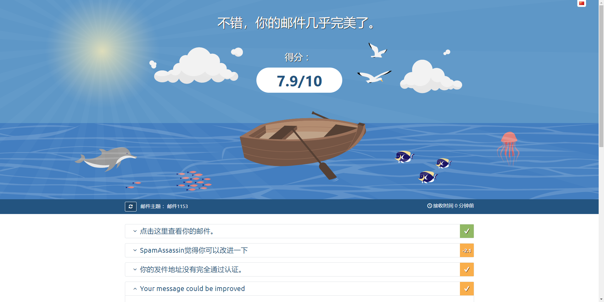 检查邮件垃圾邮件匹配度(测试SPF、DKIM、DMARC) 测试你发出邮件的垃圾邮件匹配度 https://www.mail-tester.com/ 浏览器进入 https://www.mail-tester.com 复制浏览器上显示的邮件地址(收件人地址) 使用自己邮箱发邮件 在网站在检查结果 Post Views: 3