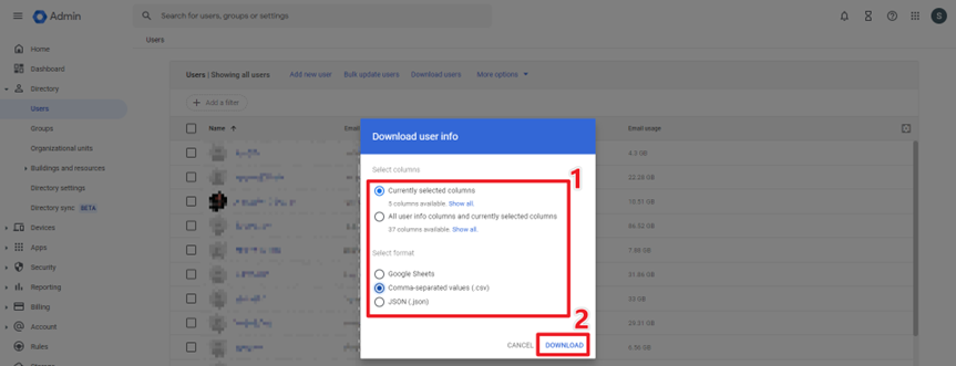 批量导出用户邮箱使用情况(谷歌邮箱) 进入谷歌后台Admin https://admin.google.com/ 目录 > 用户 > 下载用户 选择需要下载的列 > 下载的格式 > 下载 Post Views: 2