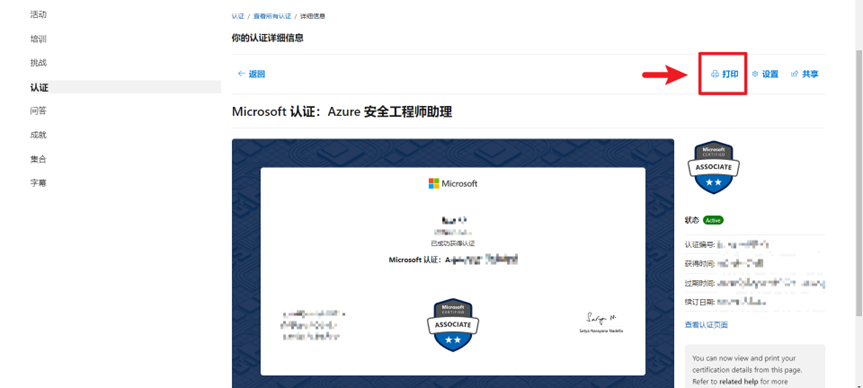 查看微软认证证书 使用浏览器进入微软Learn 网站 https://learn.microsoft.com/ 右上角登录 > 配置文件 认证 > 查看认证详细信息 可查看证书信息,或打印PDF Post Views: 2