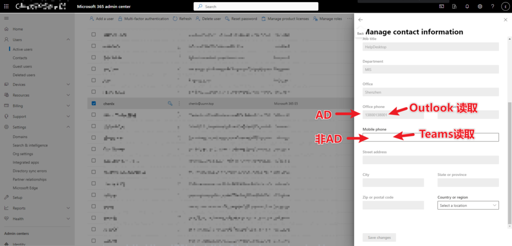 Microsoft 365 用户与AD用户混合部署 本地AD通过Azure AD Connect同步到Azure AD后。 Office Phone办公室电话:来自AD,会被Outlook网页版、客户端读取 Mobile Phone移动电话:来自M365/Azure AD,会被Teams读取 Post Views: 3