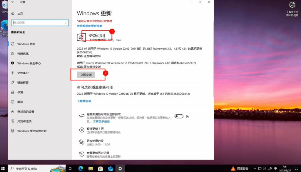 检查更新 > 立即安装