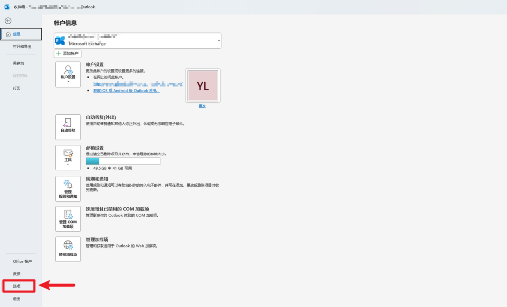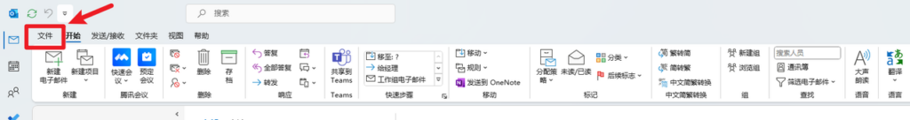 Outlook 客户端 > 左上角 > 文件