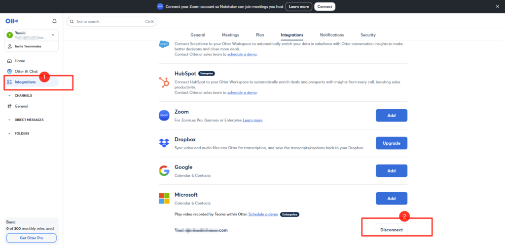 左侧菜单 > Integrations > Microsoft > Disconnect