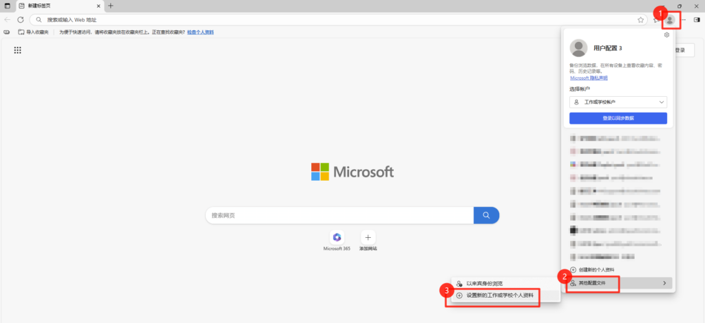 设置新的工作账号(Edge浏览器) 打开Edge浏览器 > 右上角头像 > 其他配置文件 > 设置新的工作或学校个人资料 登录以同步数据 > 输入公司账号和密码登录 > 就可以同步收藏夹、浏览历史、保存的密码 信息 最后更新20250920 Post Views: 2