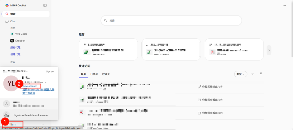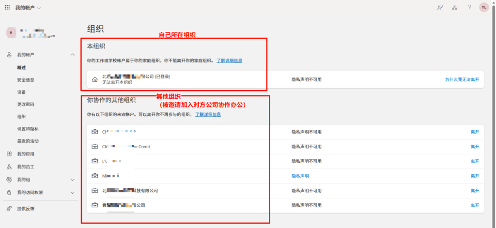 查看账户加入的组织(Microsoft 365) https://portal.office.com 进入365 Portal > 左下角 头像 > View account 进入 管理组织 查看自己所在组织 > 其他组织(被邀请加入对方公司协作办公) Post Views: 13
