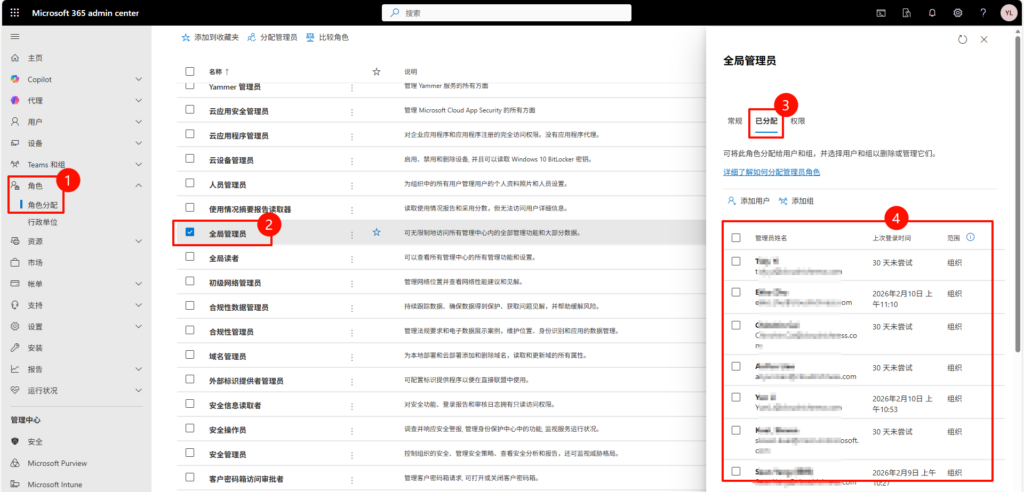 Microsoft 365管理中心 > 角色 > 角色分配
