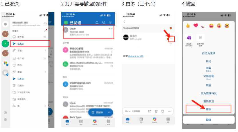 已发送 > 打开需要撤回的邮件 > 更多 > 撤回