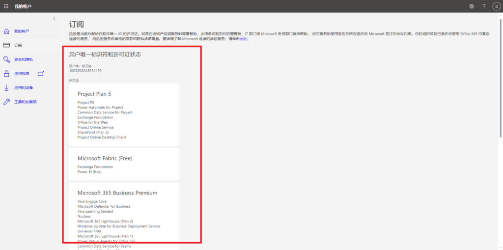 查看M365用户许可证(自助查询) 根据购买的版本选择网址 国际版 https://portal.office.com 中国版 https://login.partner.microsoftonline.cn 输入公司账号密码登录 > 左下角头像 > View account 查看订阅 显示当前账号拥有的所有许可证 Post Views: 19