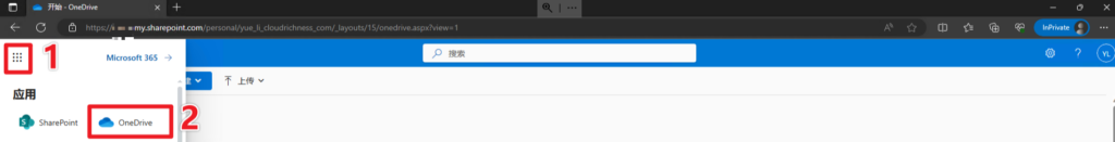 进入OneDrive 网页版 > 左上角 > OneDrive 图标