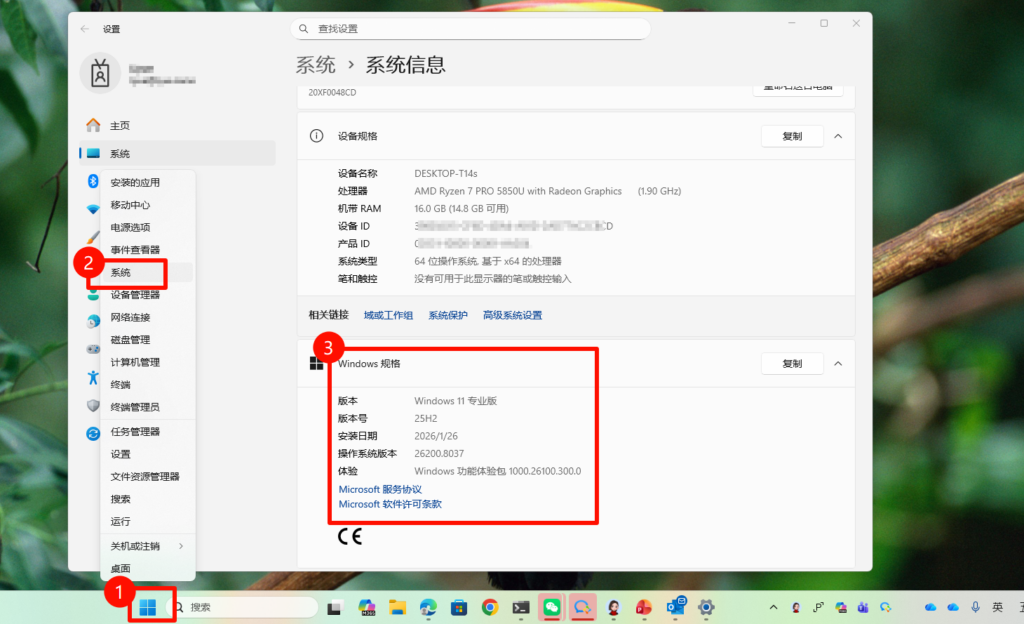 开始菜单 > 右键 > 系统 >
