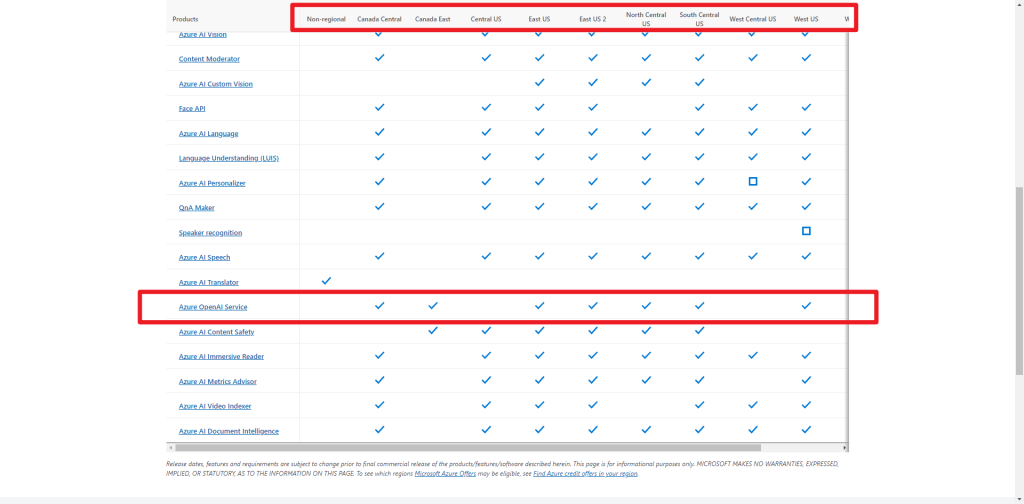 Azure Products available by region Check Azure Products website: https://azure.microsoft.com/en-us/explore/global-infrastructure/products-by-region/?products=cognitive-services Post Views: 137